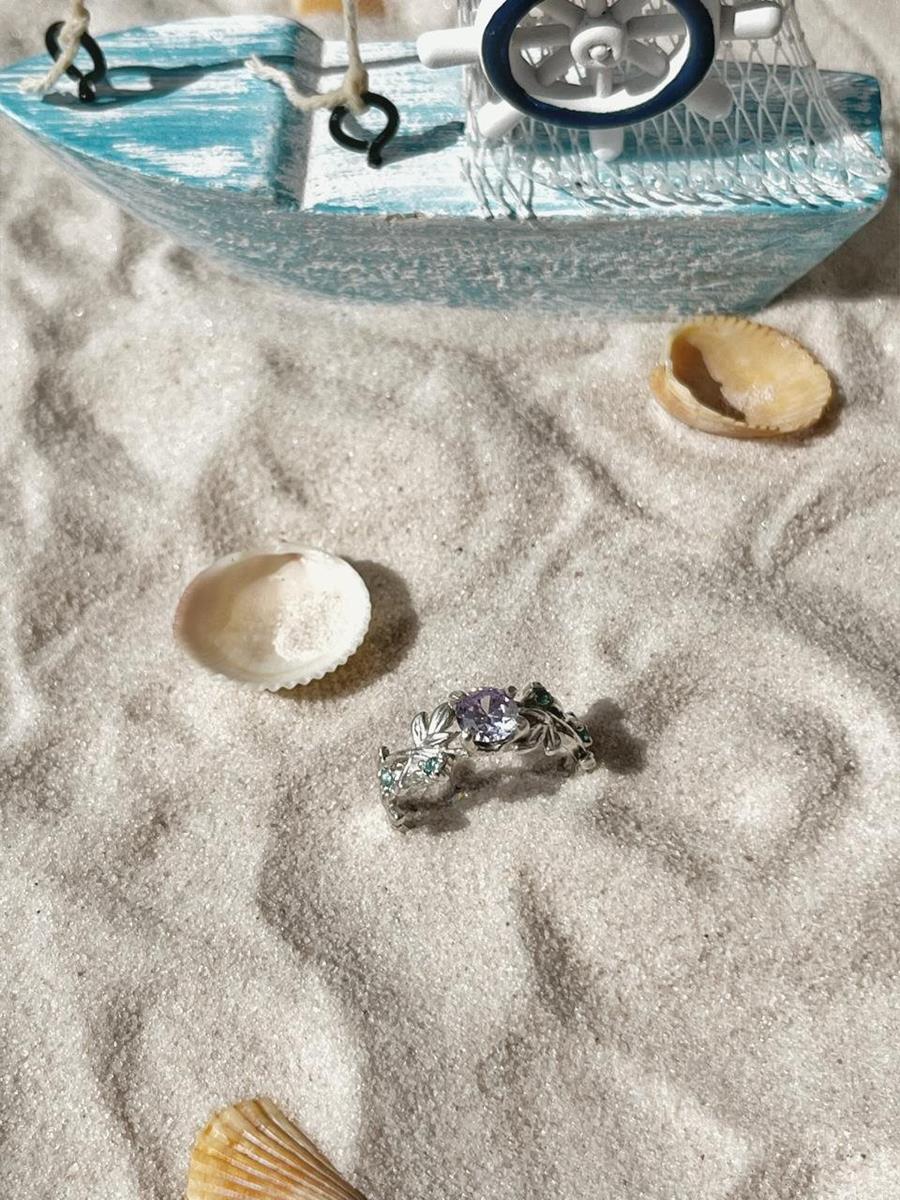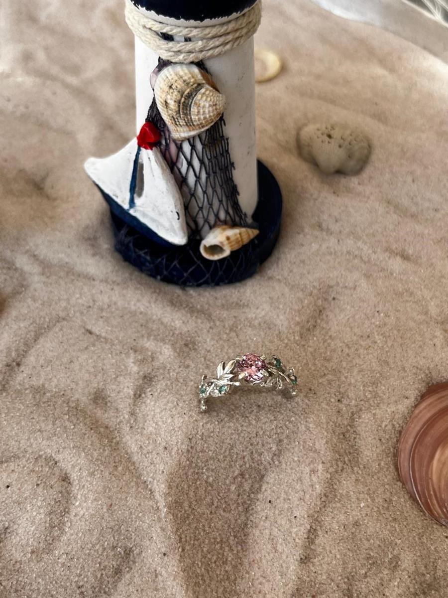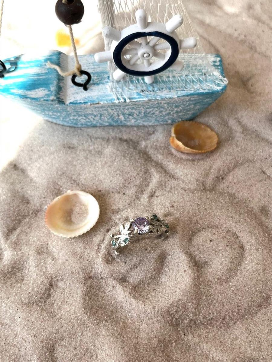 Anel de prata 950 ramo de flores.